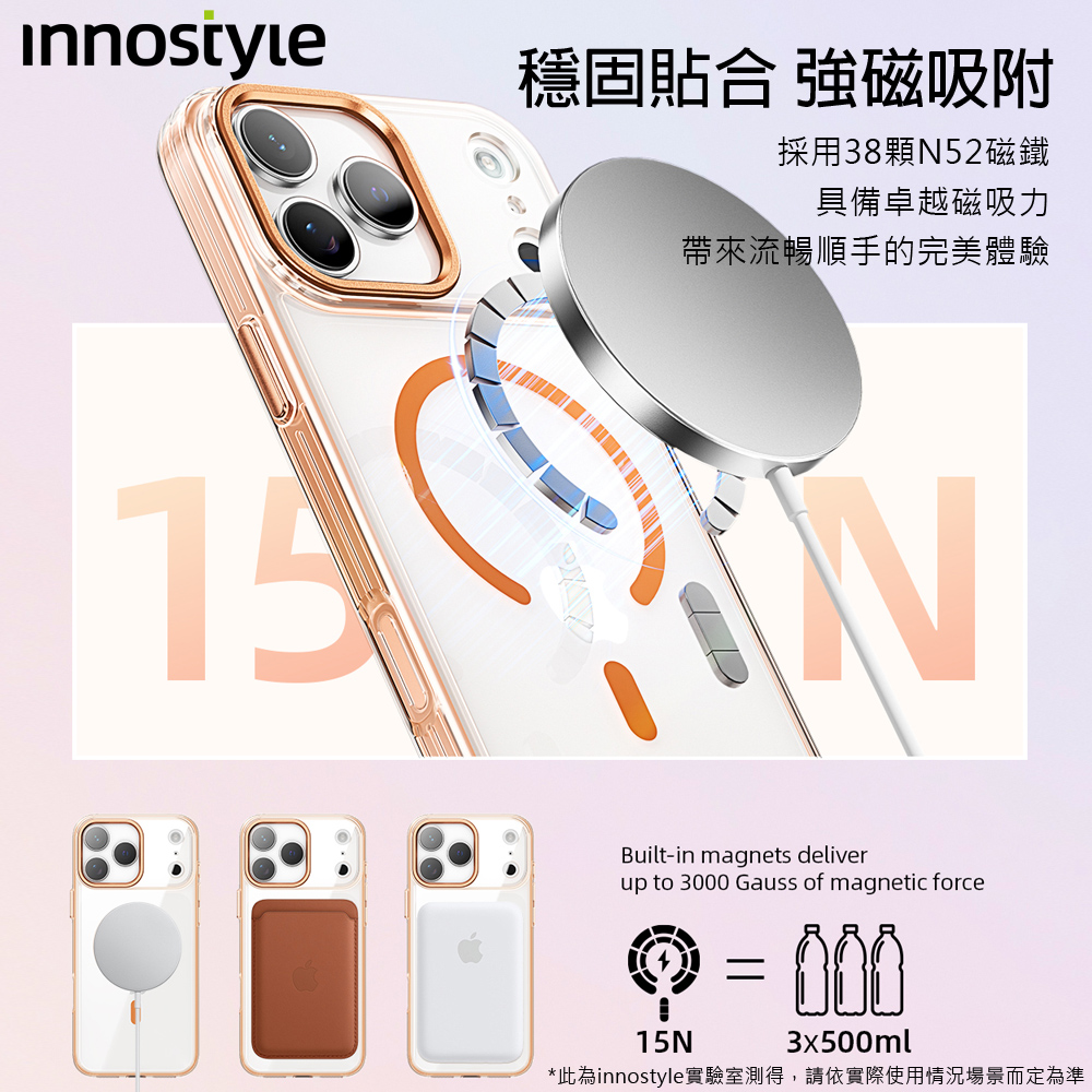 innostyle iPhone 17 Pro 磁吸合金框防摔手機保護殼 MagGuard系列 MagSafe 透黑