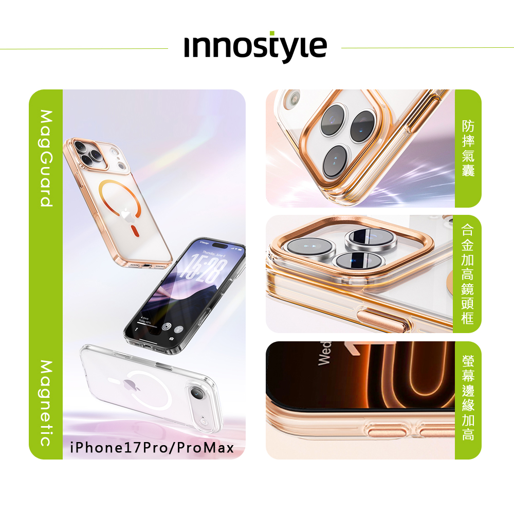 innostyle iPhone 17 Pro 磁吸合金框防摔手機保護殼 MagGuard系列 MagSafe 透明