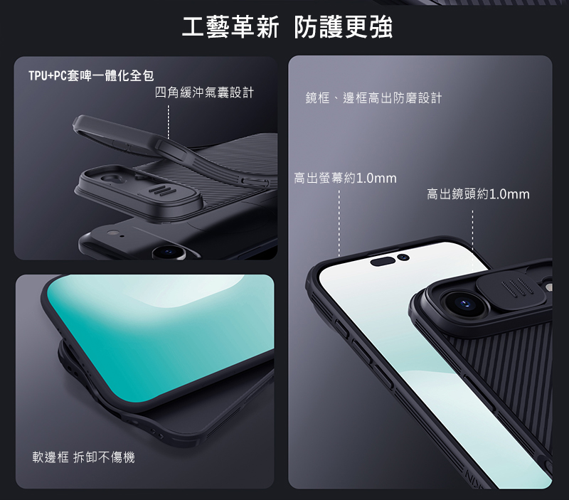 .時尚經典紋理設計,四角防摔氣囊包邊