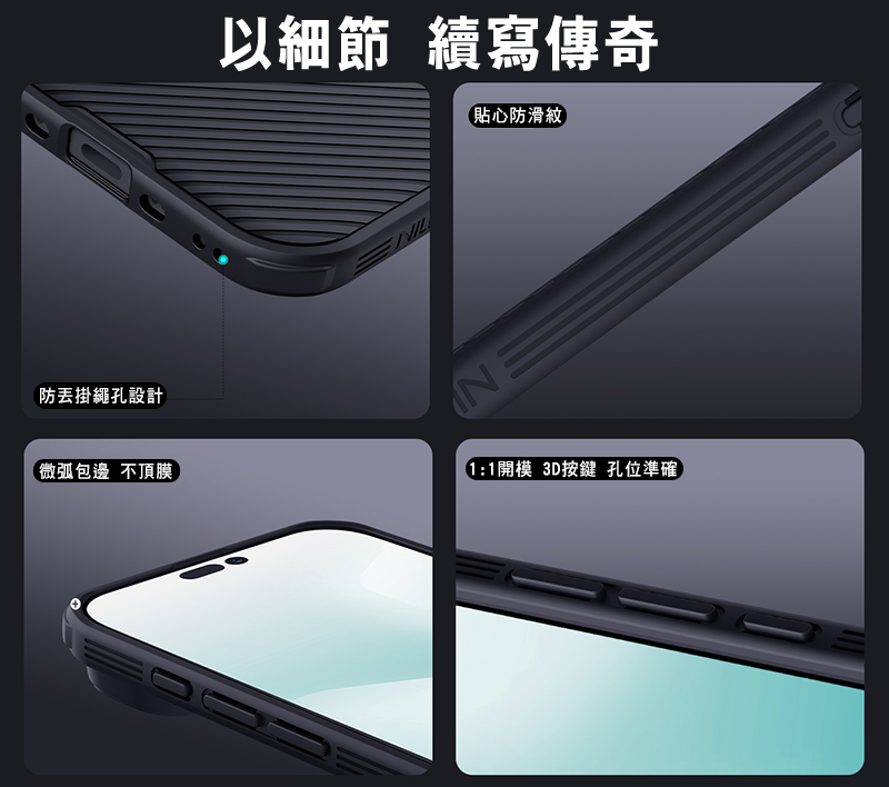 .時尚經典紋理設計,四角防摔氣囊包邊,無懼碰撞,持久保留硬朗風采