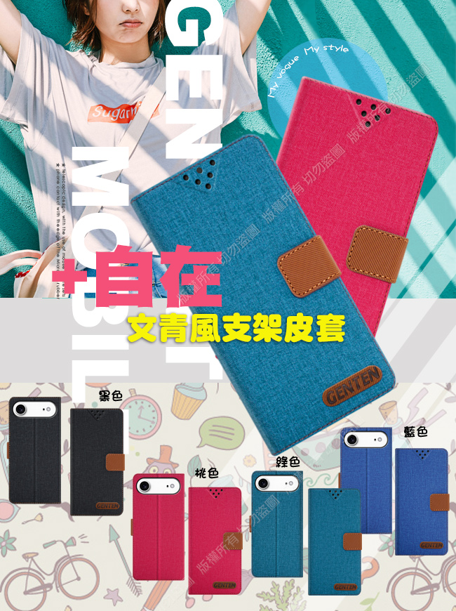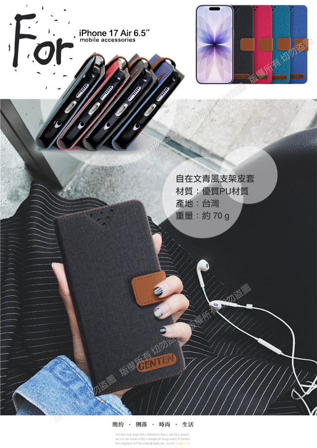 GENTEN iPhone 17 Air 6.5 自在文青風支架皮套-綠