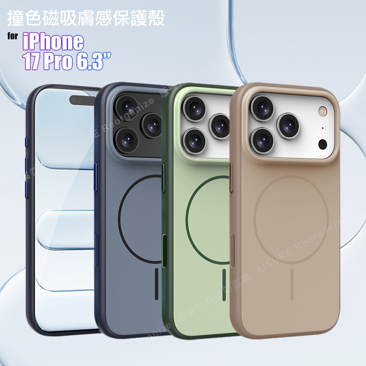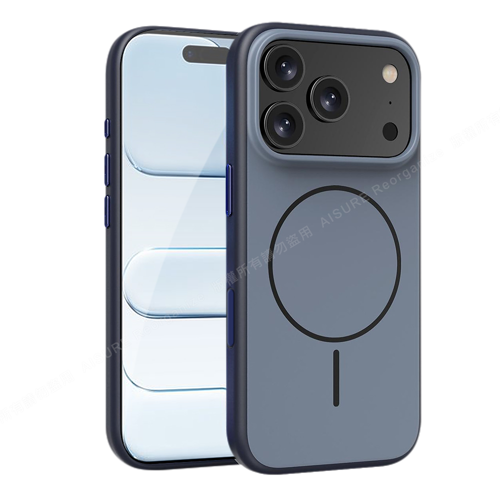 VOORCA 撞色膚感 iPhone 17 Pro 6.3 磁吸保護殼(附電子拍照鍵)-藍