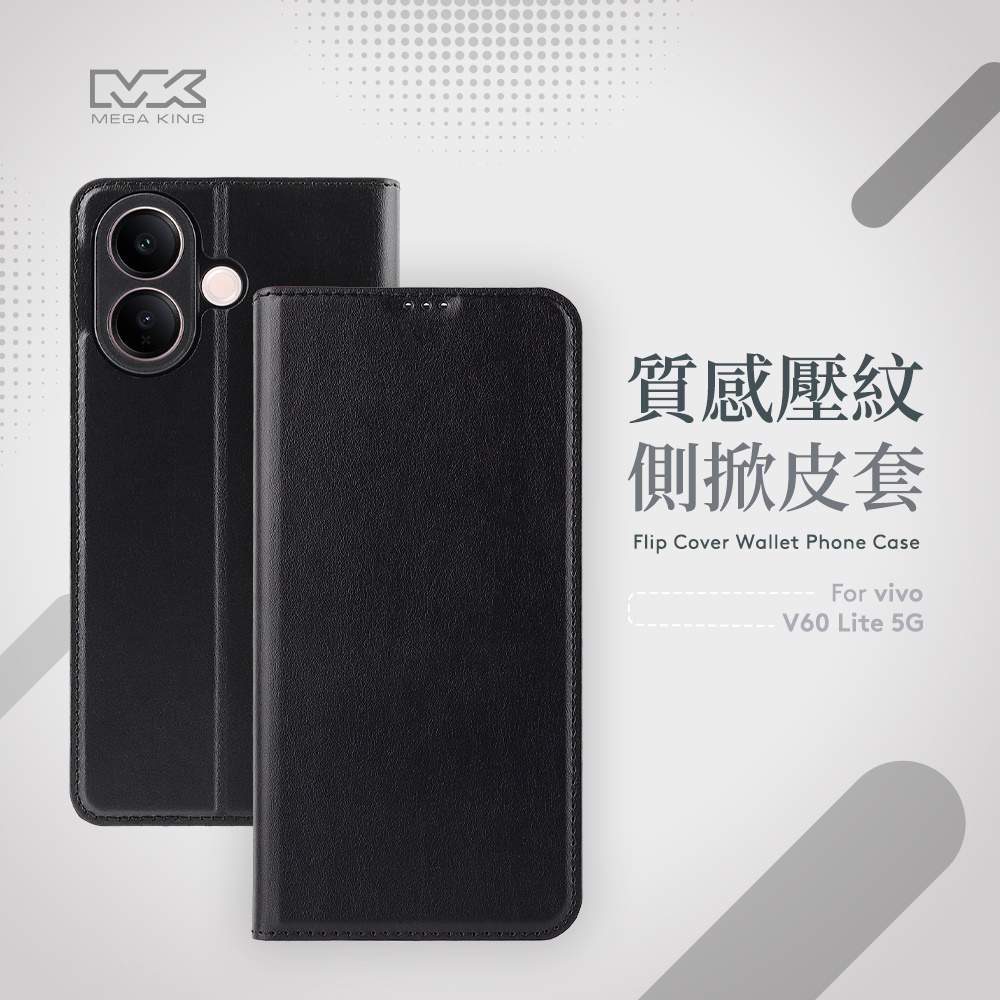 MEGA KING vivo V60 Lite 側掀皮套 黑