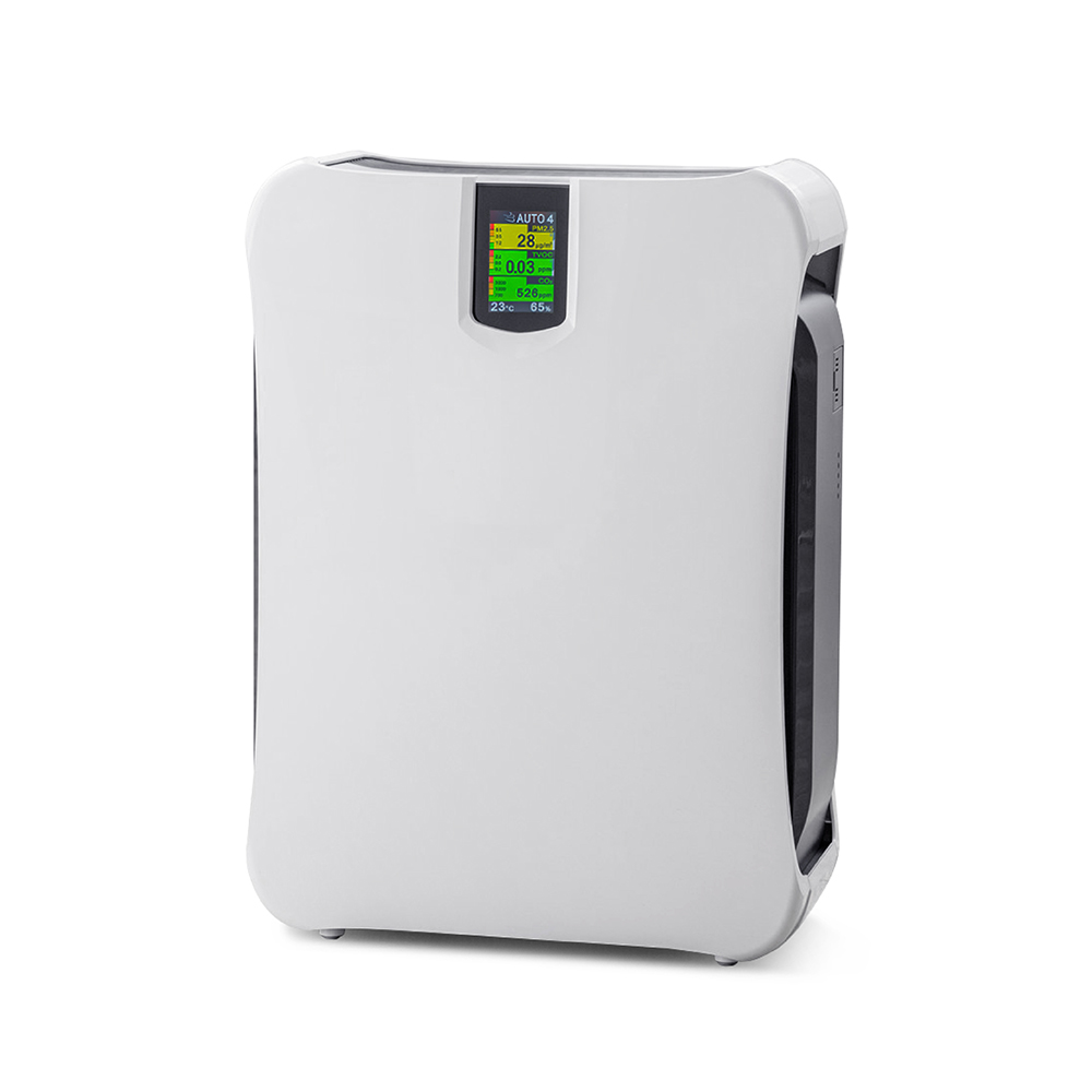 全彩超大螢幕,偵測並顯示PM2.5懸浮粒子(灰塵、寵物毛髮、二手菸、汽機車廢氣、油煙等大顆粒污染物)、TVOC揮發性有機化合物(清潔劑、油煙、甲醛、甲苯、裝潢、油漆)、CO2二氧化碳濃度 (通風不良) 之數據,隨時掌握空氣品質。