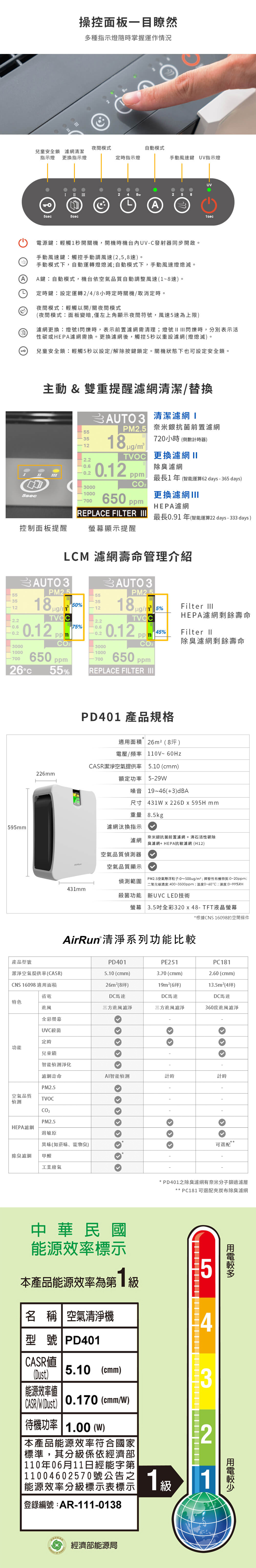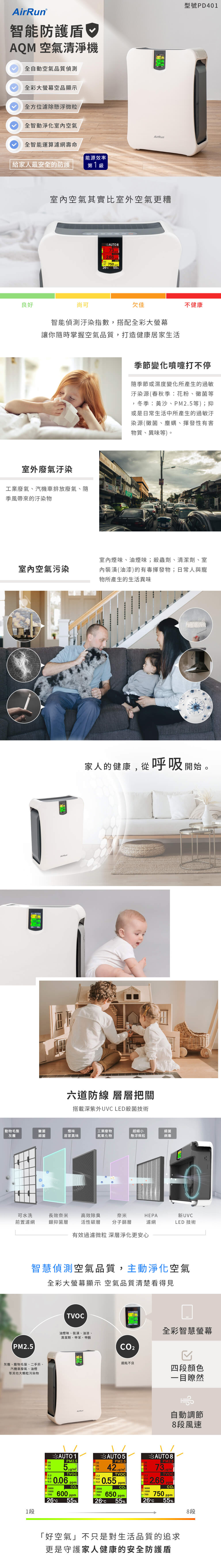AirRun AQM 空氣清淨機-PD401(AI偵測淨化/智能濾網管理/空氣品質偵測)