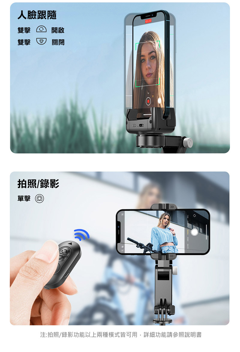 CYKE Q18 全自動跟拍雲台/自拍桿(正交三軸+APP人臉追蹤) + Gimbal 藍牙控制器