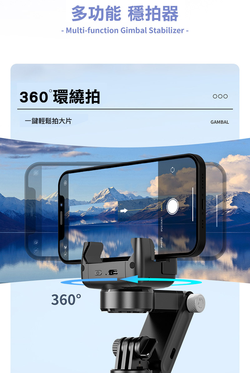 ※旋轉軸是自動穩定,其餘兩軸手動固定