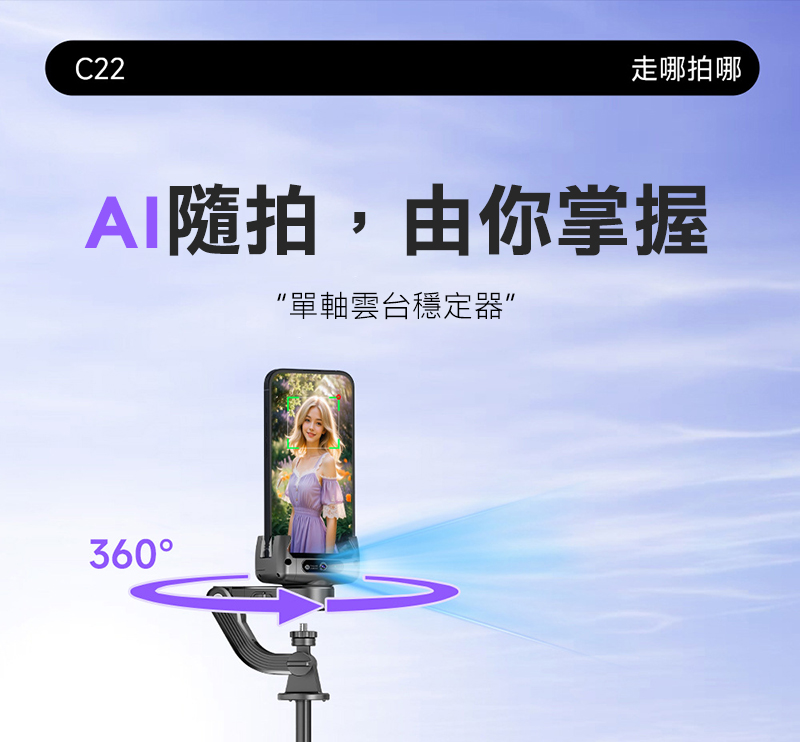 CYKE C22 全自動跟拍防抖手持自拍桿(單軸 + AI人臉追蹤) + Gimbal AI 藍牙控制器