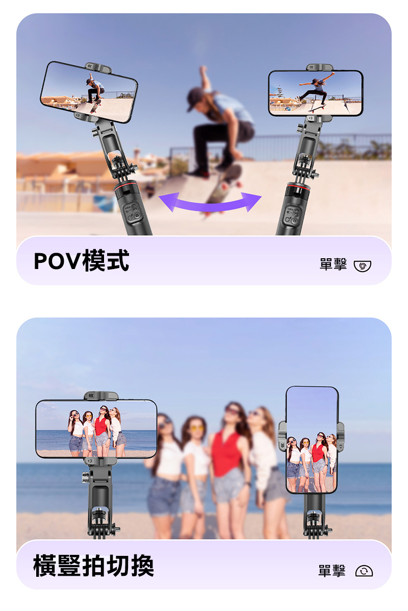 .快速切換自拍桿、雲台模式