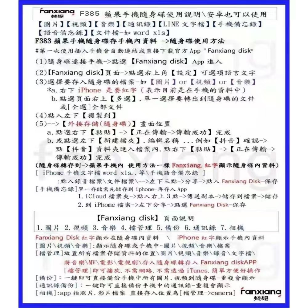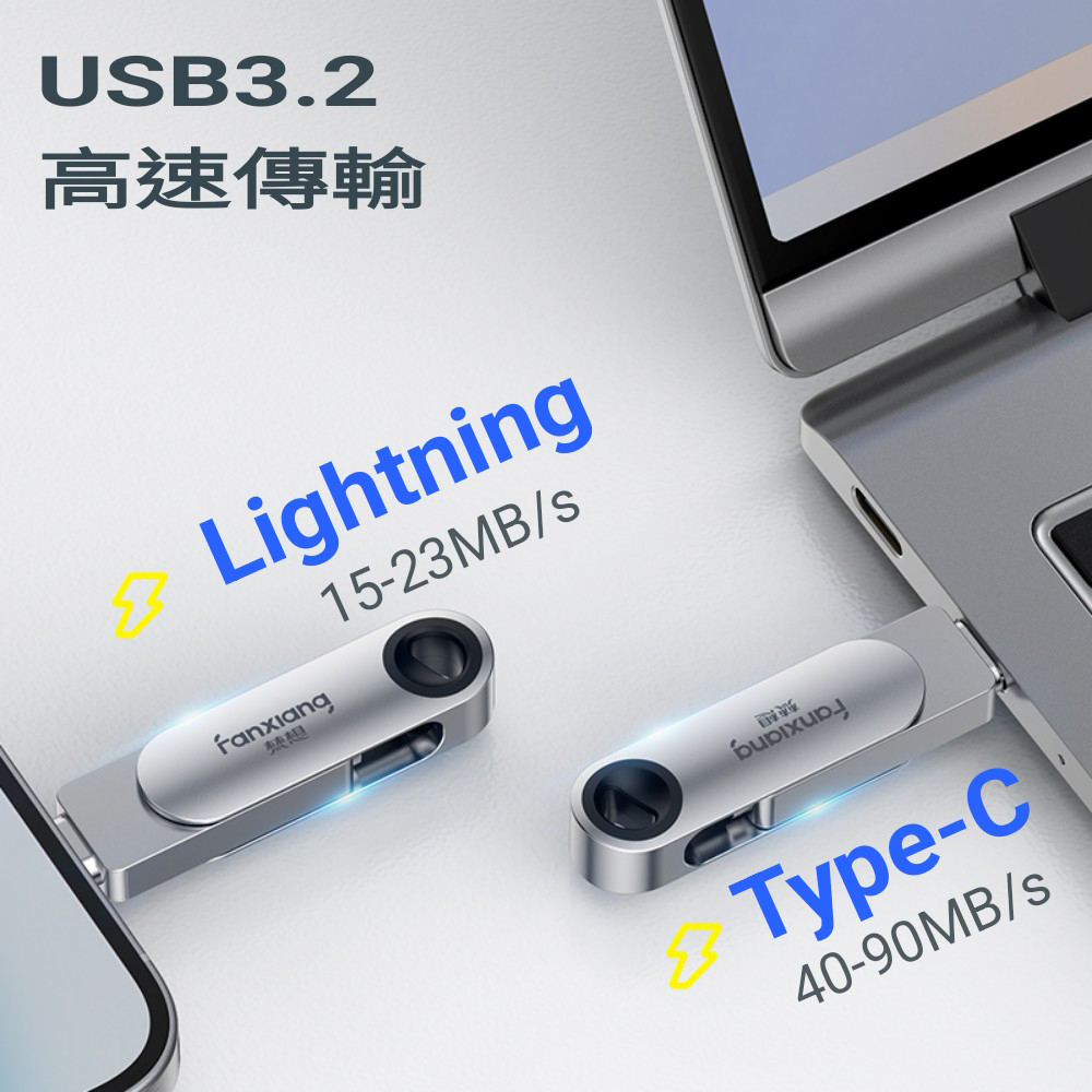 FANXIANG 梵想 F385 256GB iphone隨身碟 Lightning+TypeC