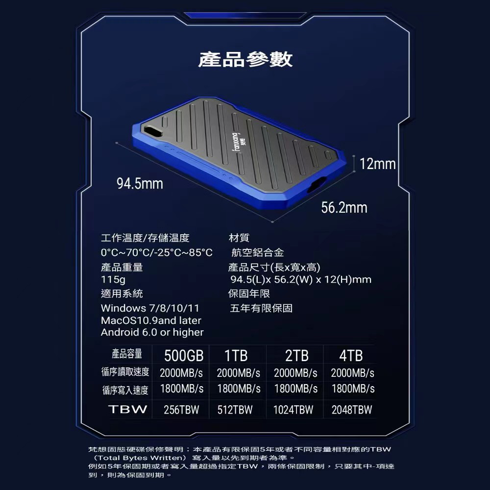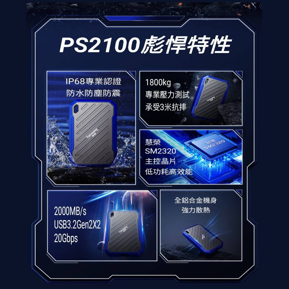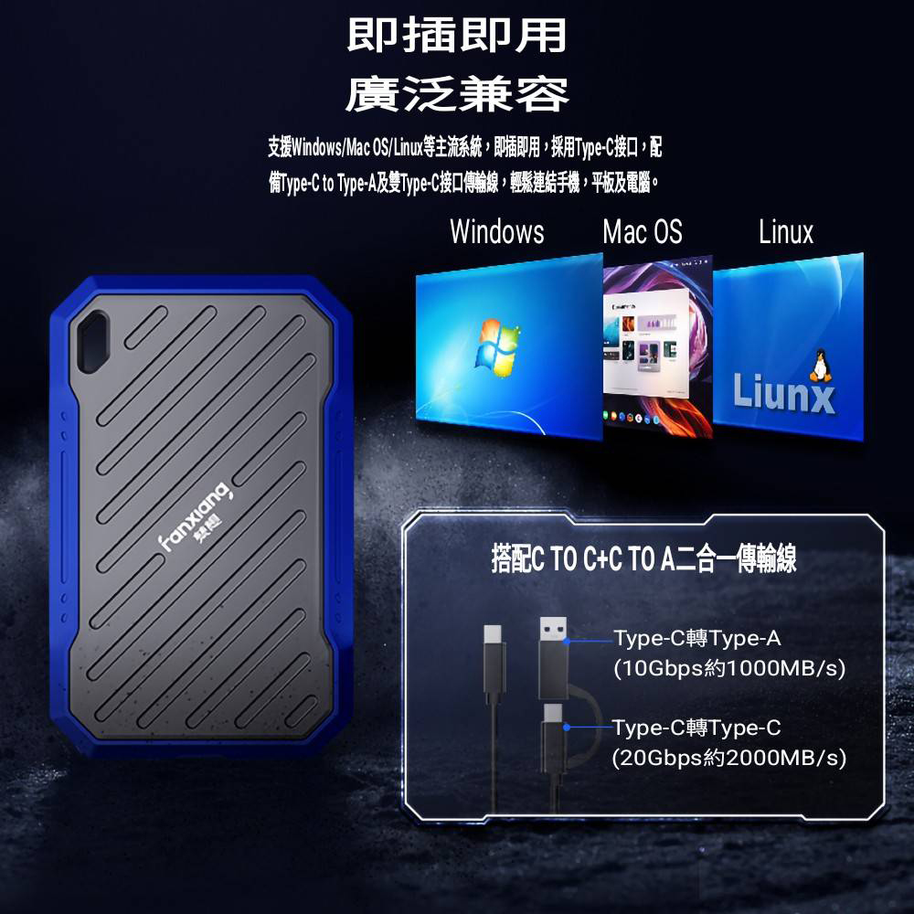 FANXIANG 梵想 PS2100 1TB外接式固態硬碟SSD 防水防塵防震USB3.2Gen2x2 Type-C讀速2000MB