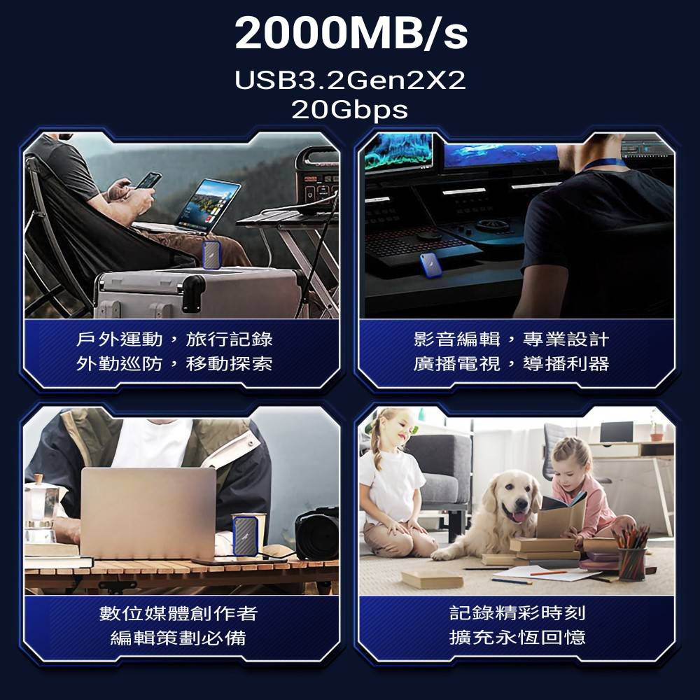 ★讀取速度2000MB/s寫入速度1800MB/s(20Gbps接口)