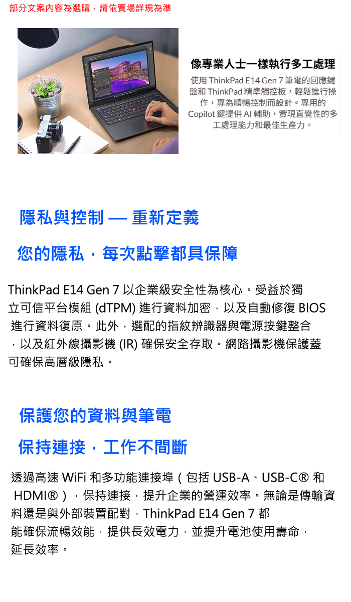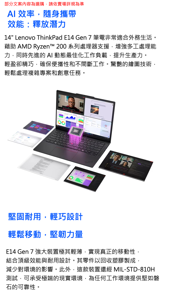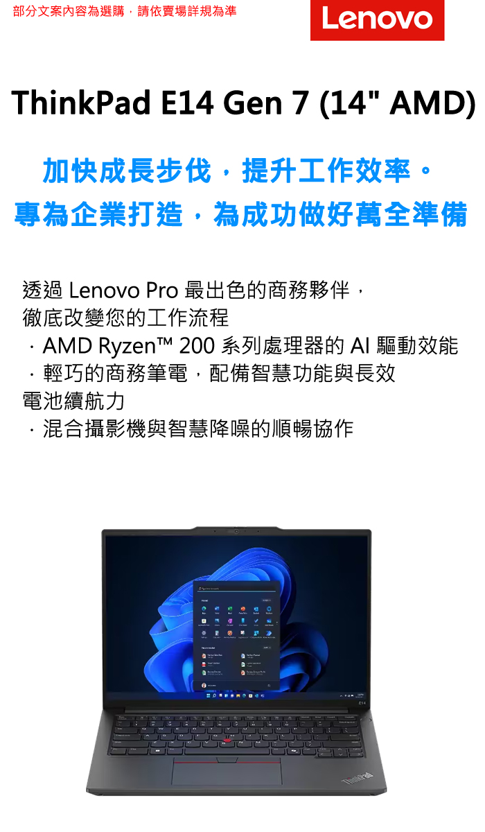 《Lenovo 聯想》ThinkPad E14 Gen 7(14吋WUXGA/Ryzen 7 250/32G+16G/1TB SSD/Win11P/特仕版)