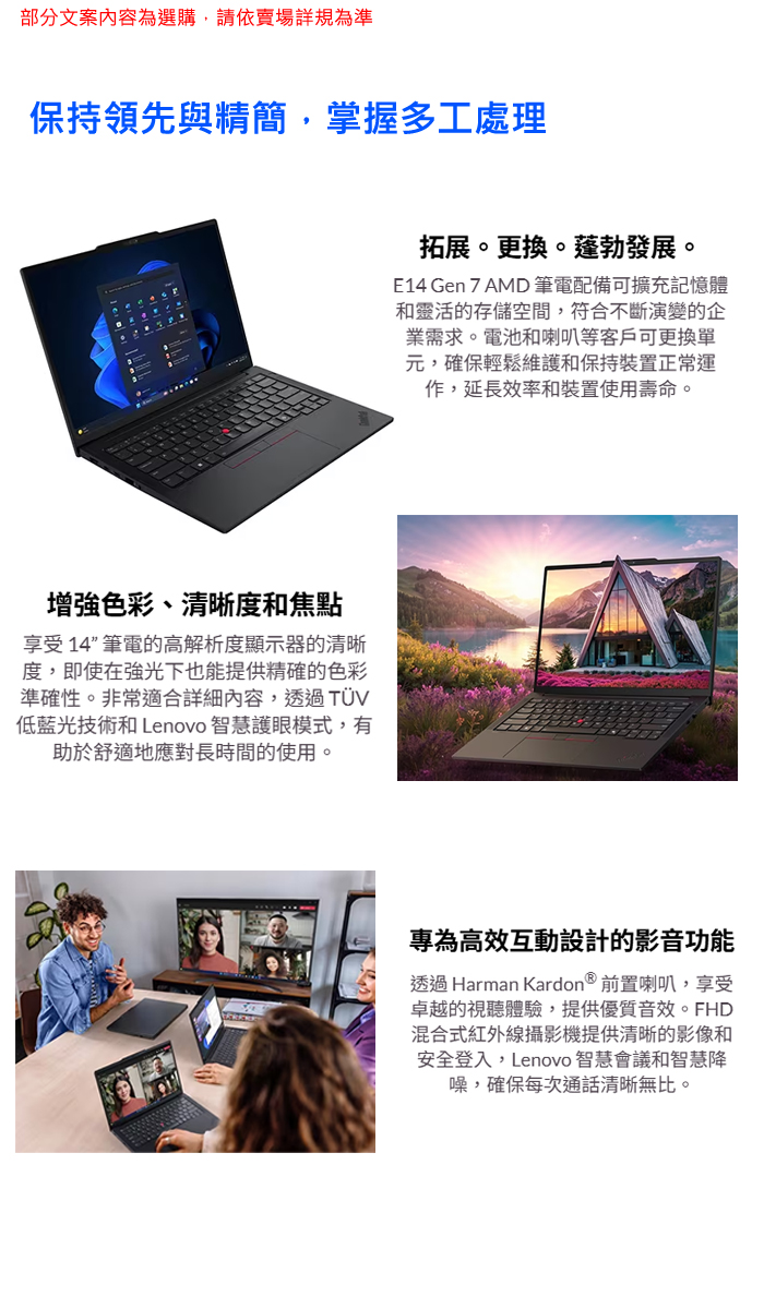 《Lenovo 聯想》ThinkPad E14 Gen 7(14吋WUXGA/Ryzen 7 250/32G/1TB+512G SSD/Win11P/特仕版)
