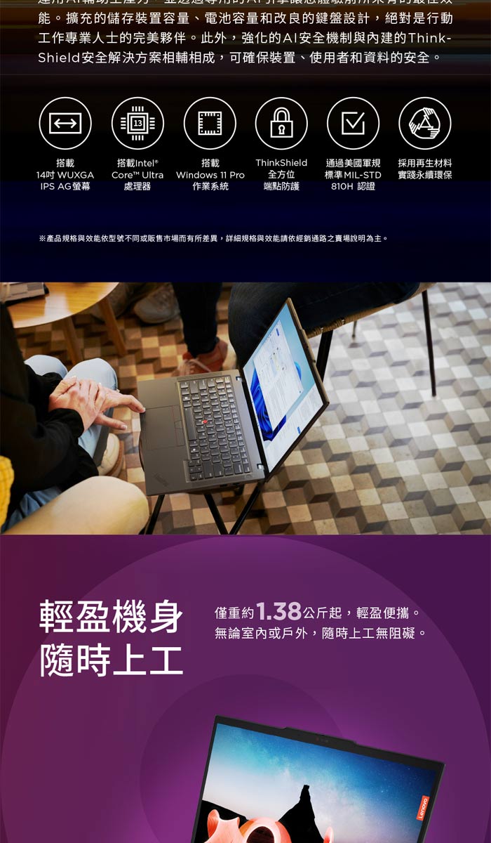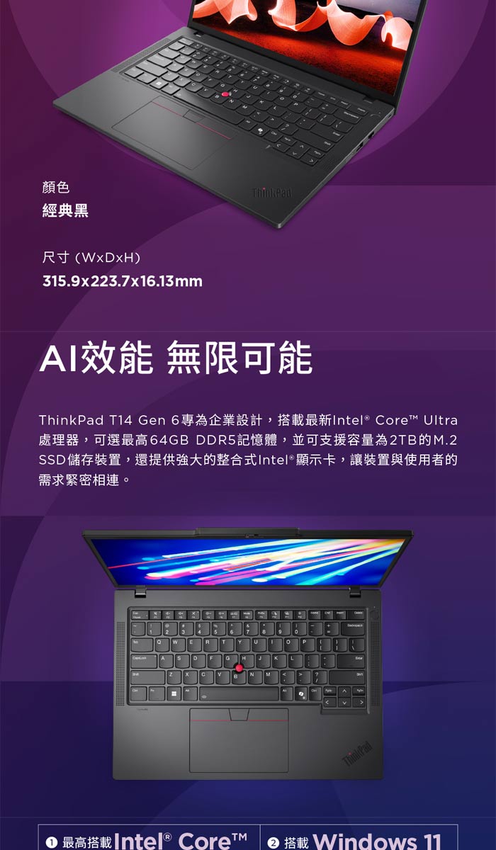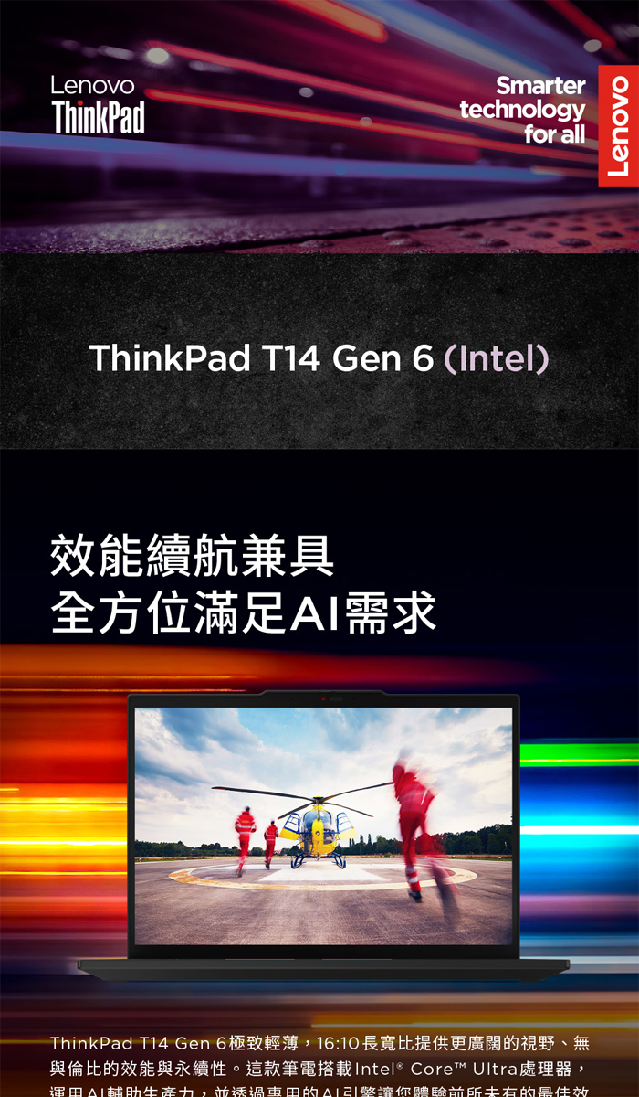 《Lenovo 聯想》ThinkPad T14 Gen 6(14吋WUXGA/Ultra 5 225H/16G+16G/1TB SSD/Win11P/特仕版)