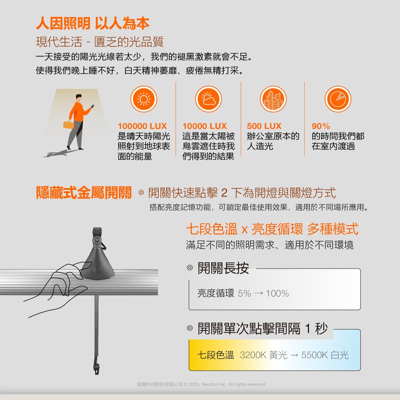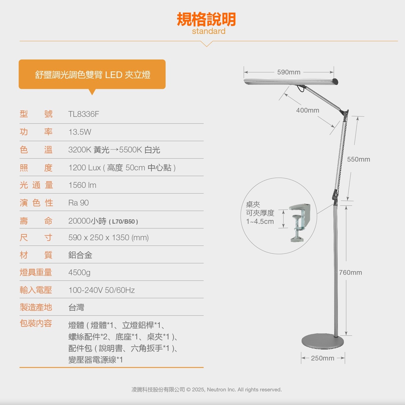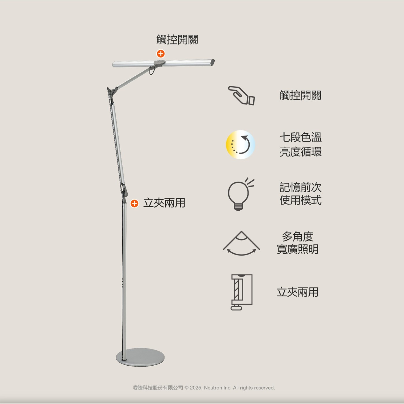 歐司朗舒壐 LED 13.5W調光調色雙臂夾立燈