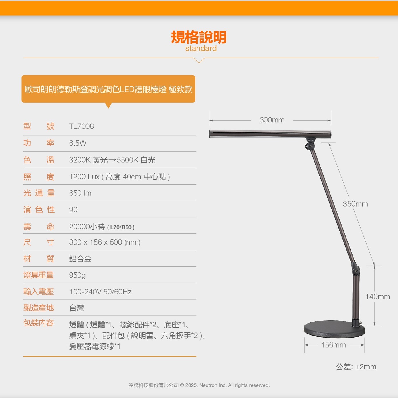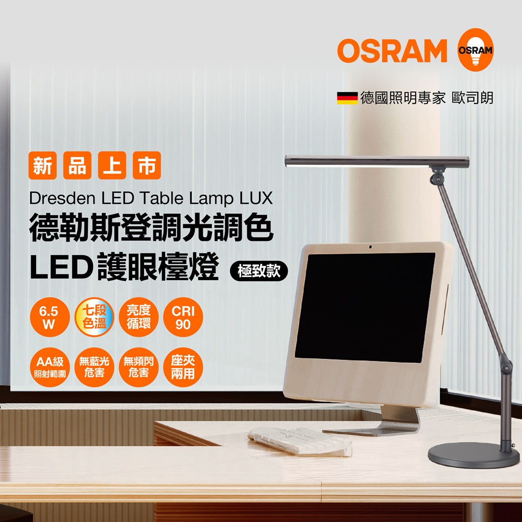 歐司朗德勒斯登調光調色LED 6.5W護眼檯燈 極致款