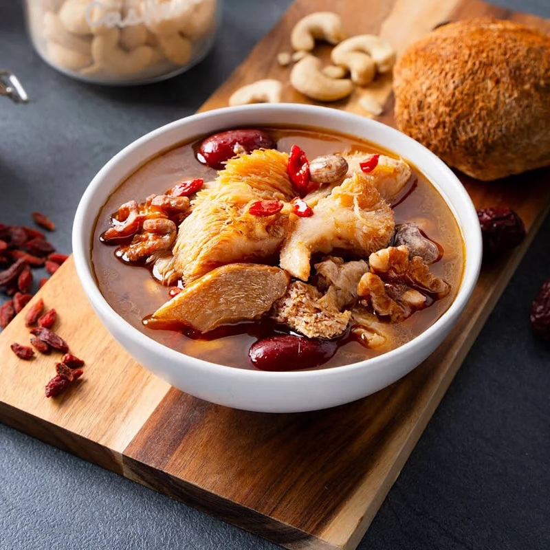 全程慢火熬煮,讓猴頭菇等食材精華融入湯內,淡淡栗子與紅棗香氣,更顯湯頭濃郁甘甜,料多味美豐富營養,超乎期待。