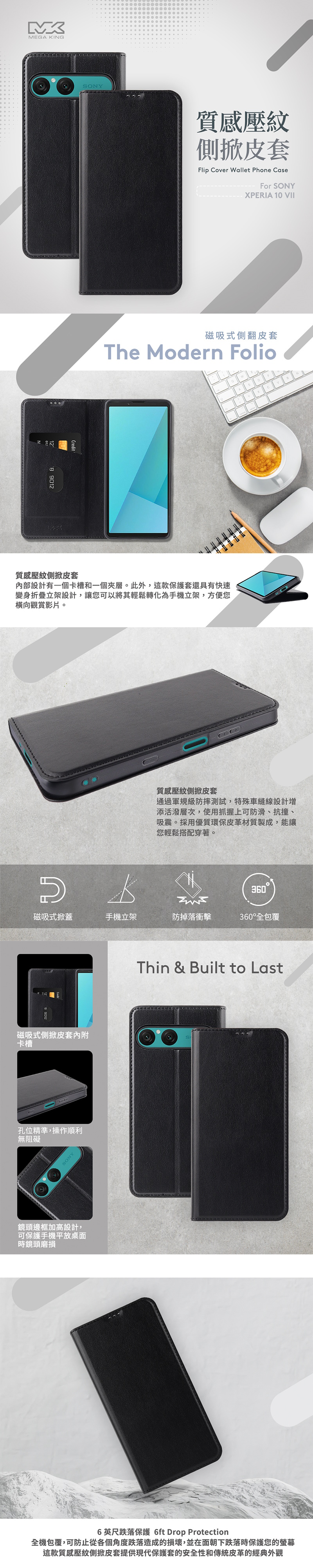 MEGA KING SONY Xperia 10 VII 側掀皮套 黑