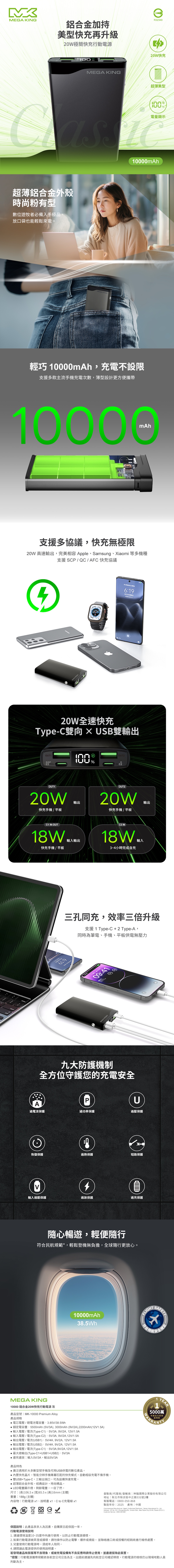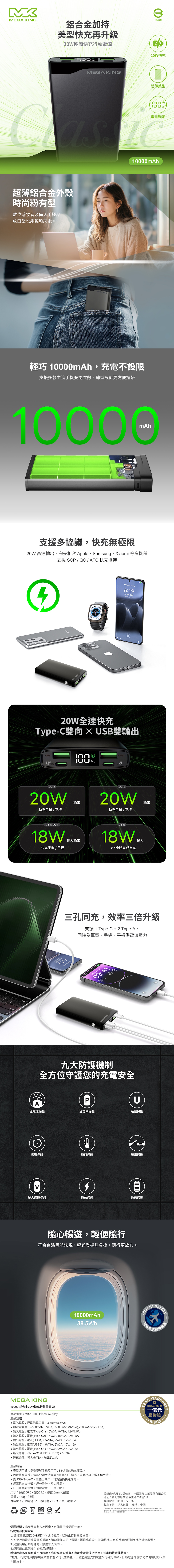 MEGA KING 10000 鋁合金20W快充行動電源 灰