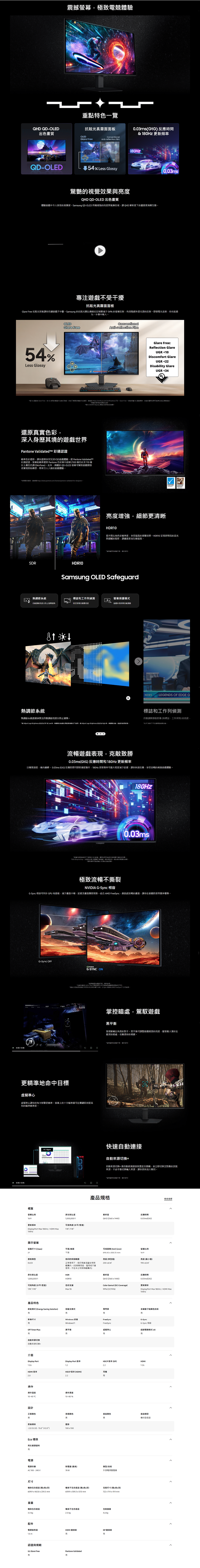 ★2560x1440 2K高解析 / 180Hz刷新率 / 0.03ms反應時間 / QD-OLED面板