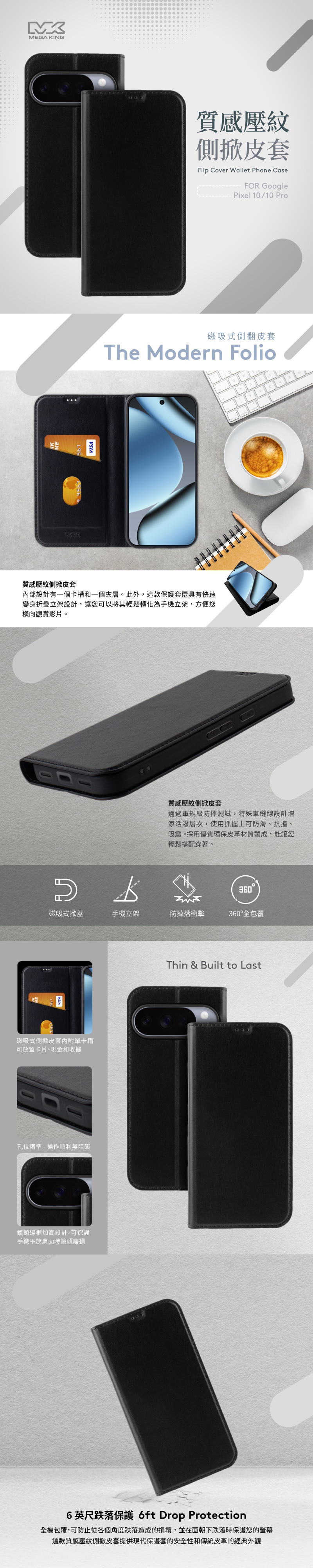 MEGA KING Google Pixel 10/10 Pro 側掀皮套 黑