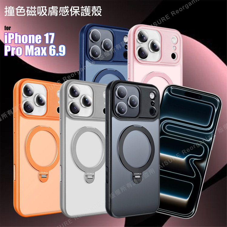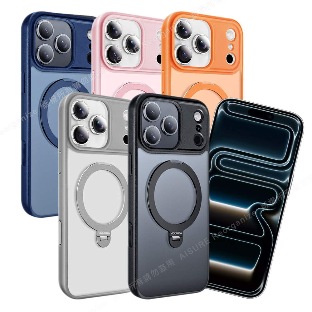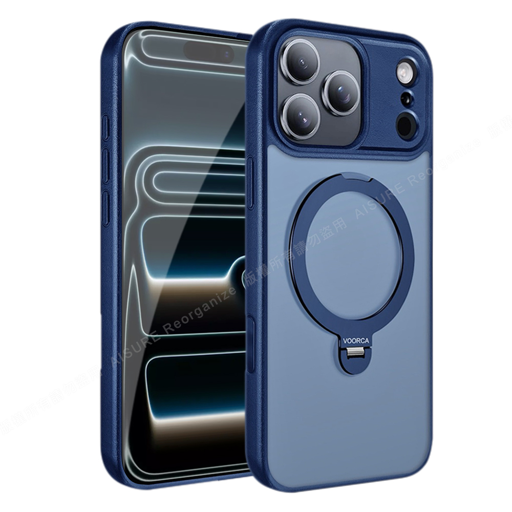 VOORCA 撞色膚感 iPhone 17 Pro Max 6.9 磨砂霧面磁吸360度防摔殼(附電子拍照鍵)-藍