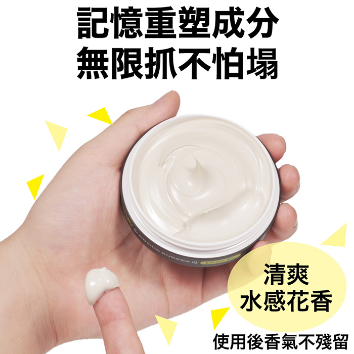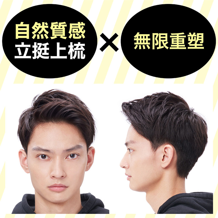 1. 取適量髮腊於手掌抹勻後,將手指插入頭髮中,並以雙手十指交扣的方式,順著頭形左右滑動,使髮根立起。