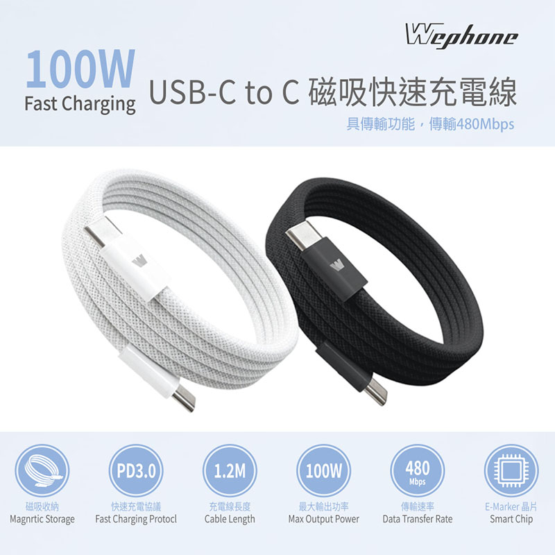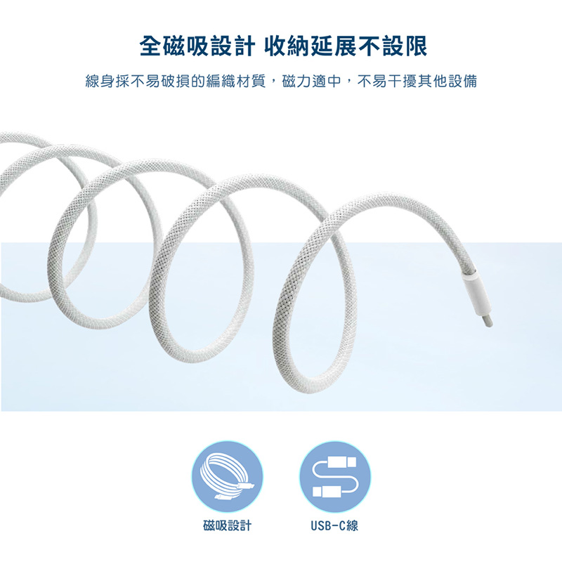 ◎ C TO C 磁吸收納,耐彎尼龍編織線快充線