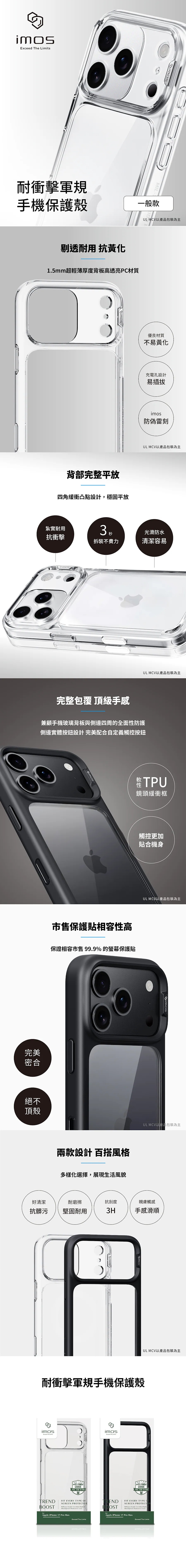 imos iPhone 17 Pro 6.3 耐衝擊軍規保護殼 透明