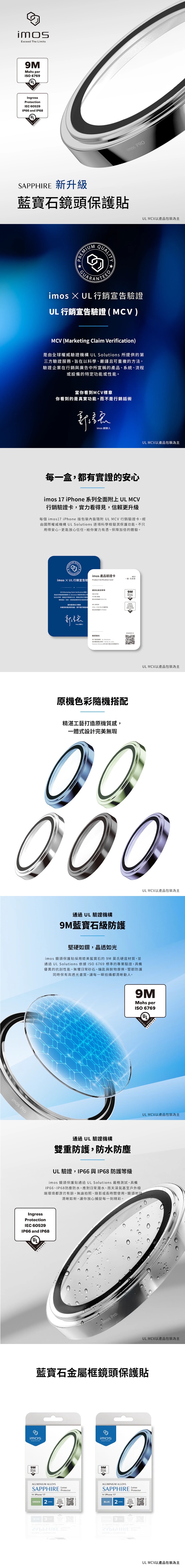 imos iPhone 17 鋁合金藍寶石鏡頭貼 雙鏡頭