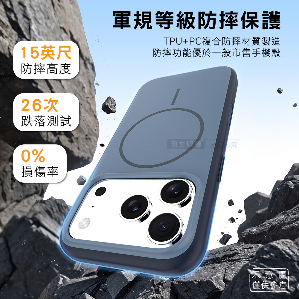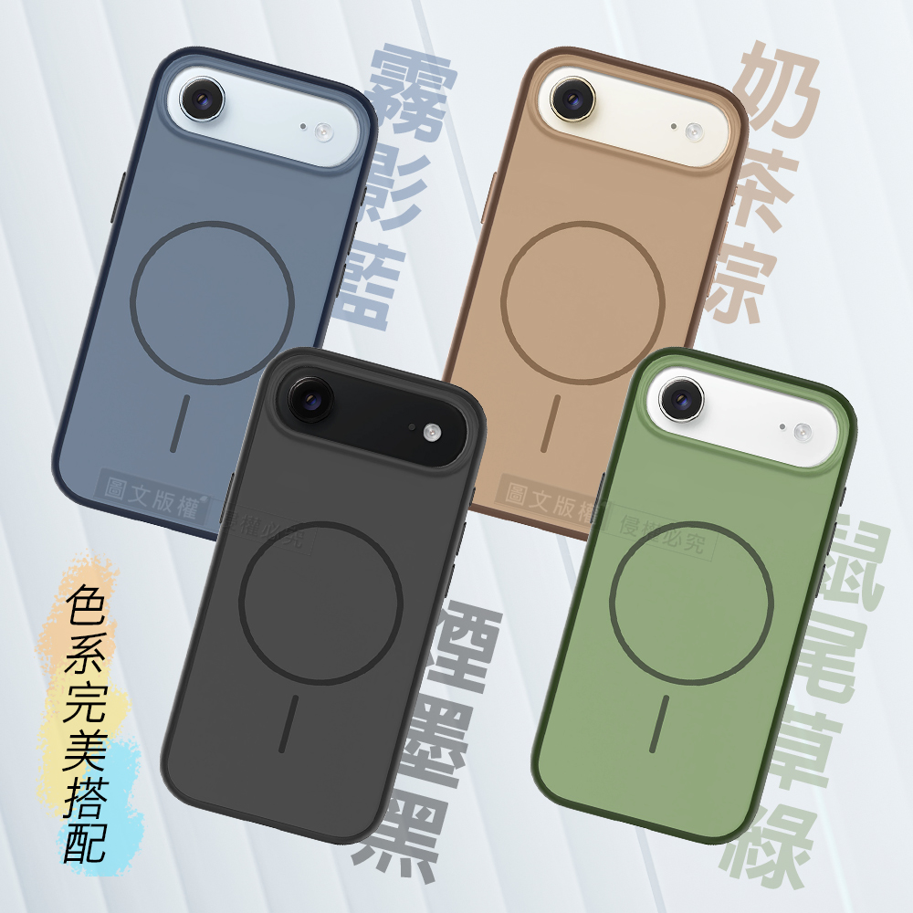 全彩撞色系列 iPhone 17 Air 磨砂膚感磁吸軍規手機殼(霧影藍)