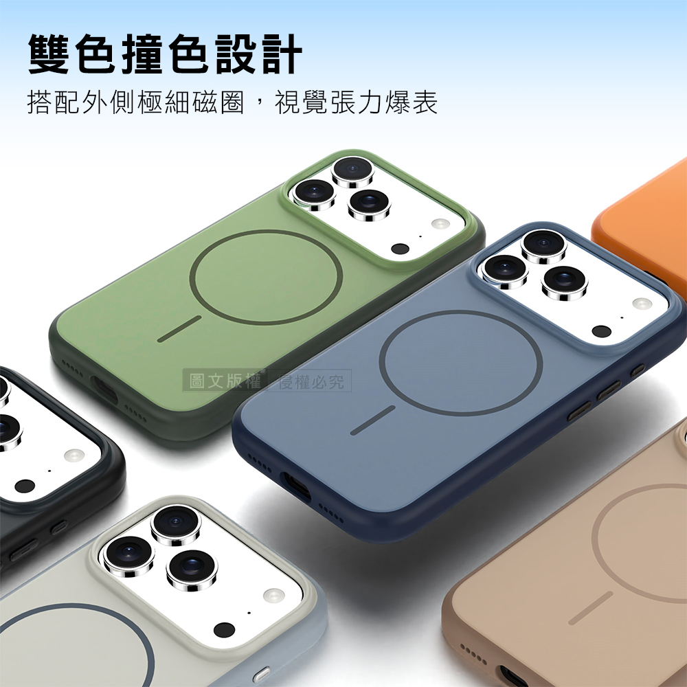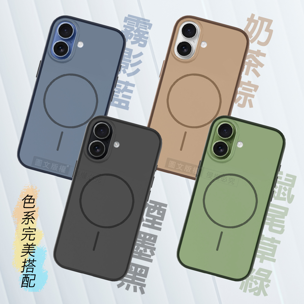 全彩撞色系列 iPhone 17 磨砂膚感磁吸軍規手機殼(鼠尾草綠)
