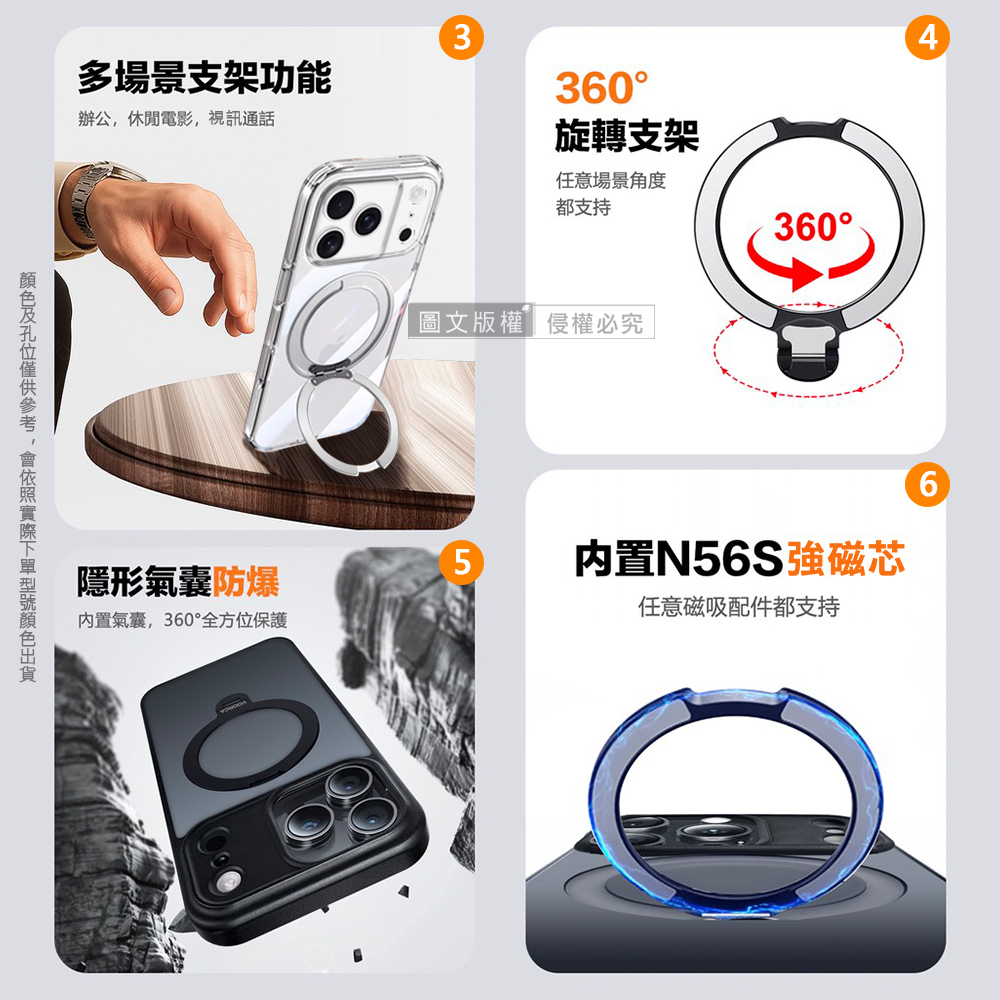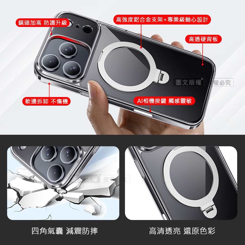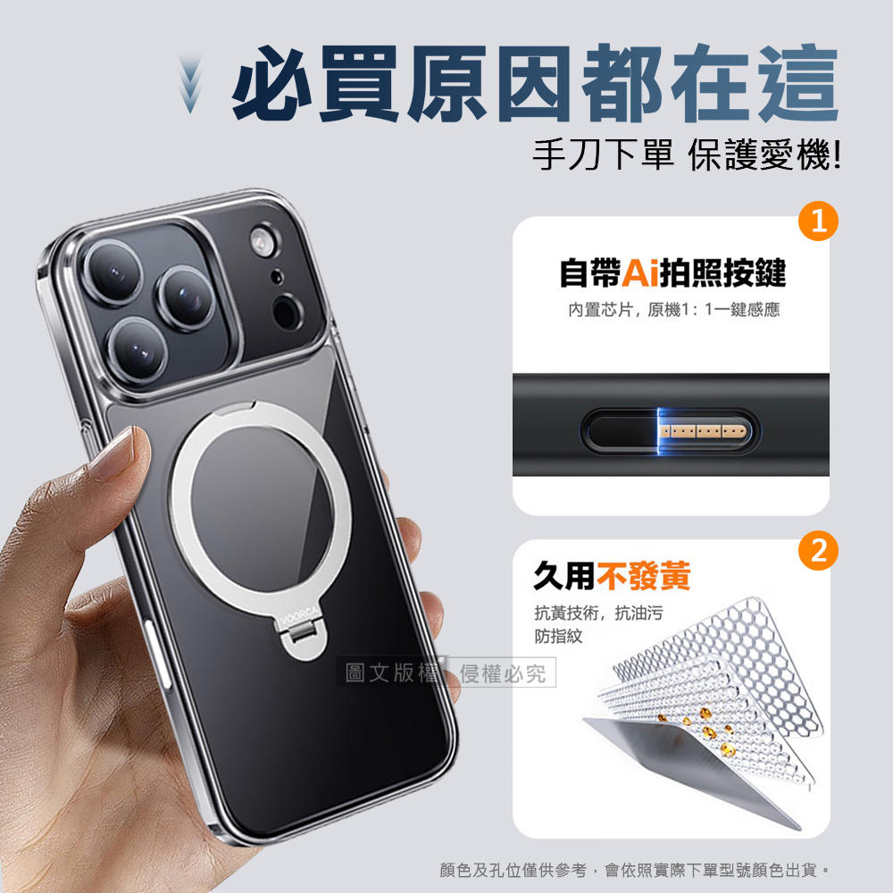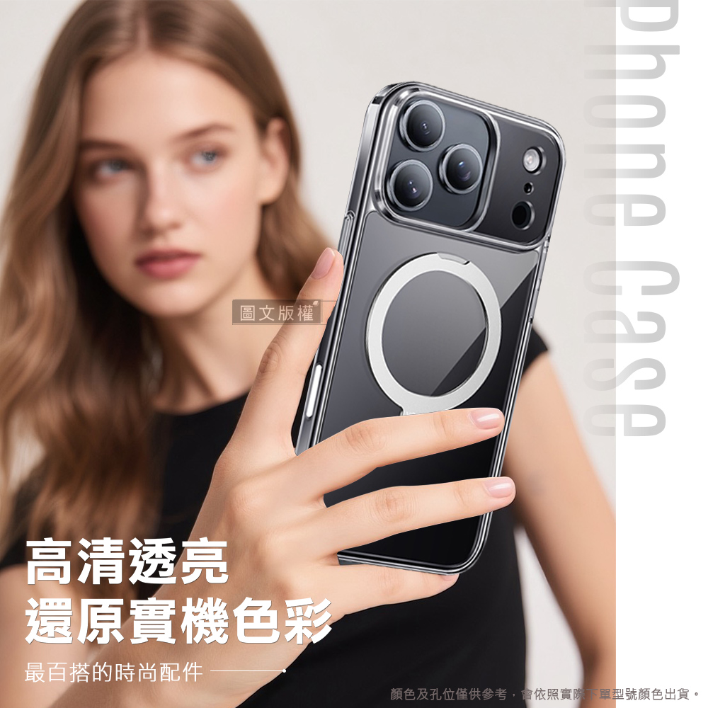 旋控 iPhone 17 360°磁吸支架清透保護殼 氣囊防摔手機殼(透明)
