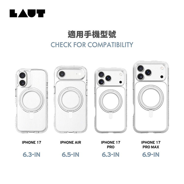 LAUT萊德 iPhone 17 Pro 6.3 磁吸360支架軍規耐衝擊保護殼-透明
