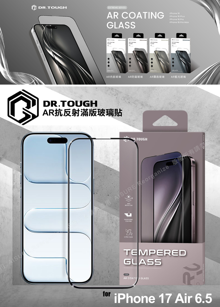 DR.TOUGH 硬博士 iPhone 17 Air 6.5 AR抗反射滿版玻璃貼