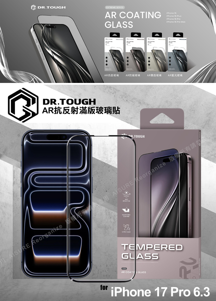 DR.TOUGH 硬博士 iPhone 17 Pro 6.3 AR抗反射滿版玻璃貼
