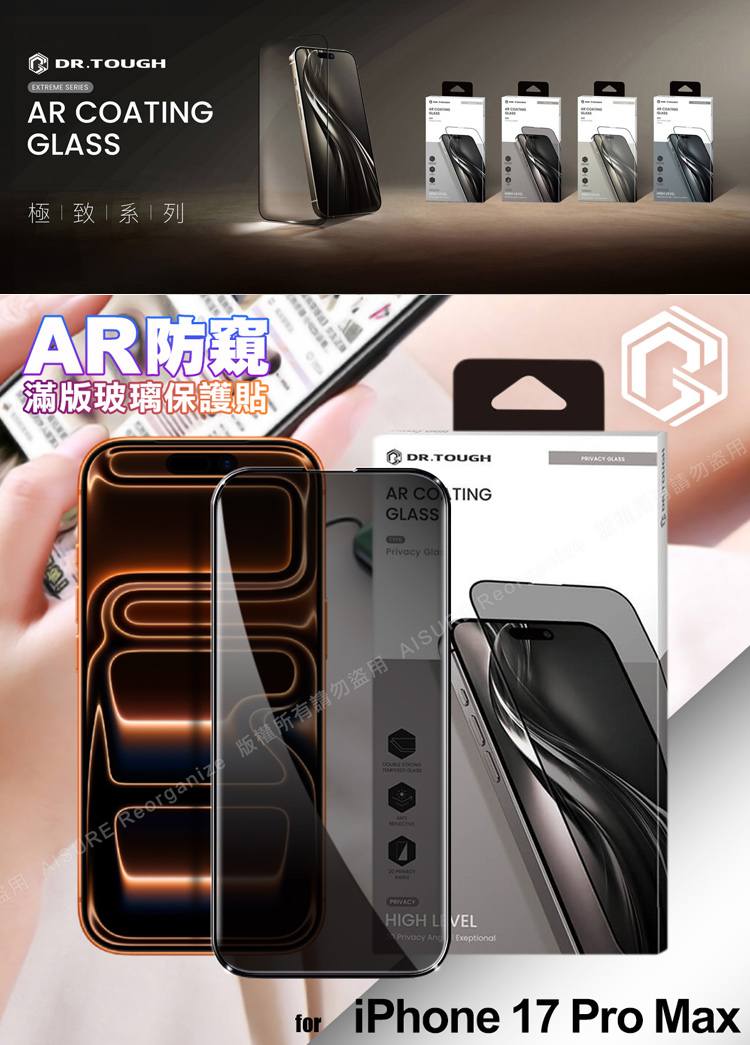 DR.TOUGH硬博士-極致系列 iPhone 17 Pro Max 滿版玻璃保護貼(AR防窺)