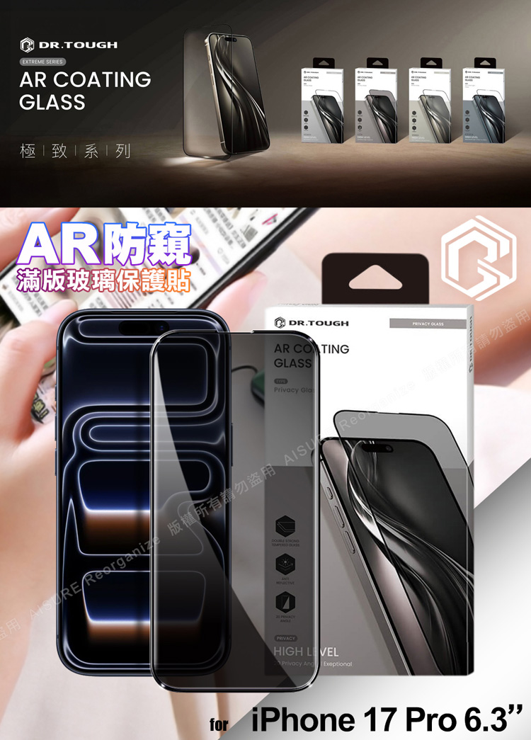 DR.TOUGH硬博士-極致系列 iPhone 17 Pro 6.3 滿版玻璃保護貼(AR防窺)