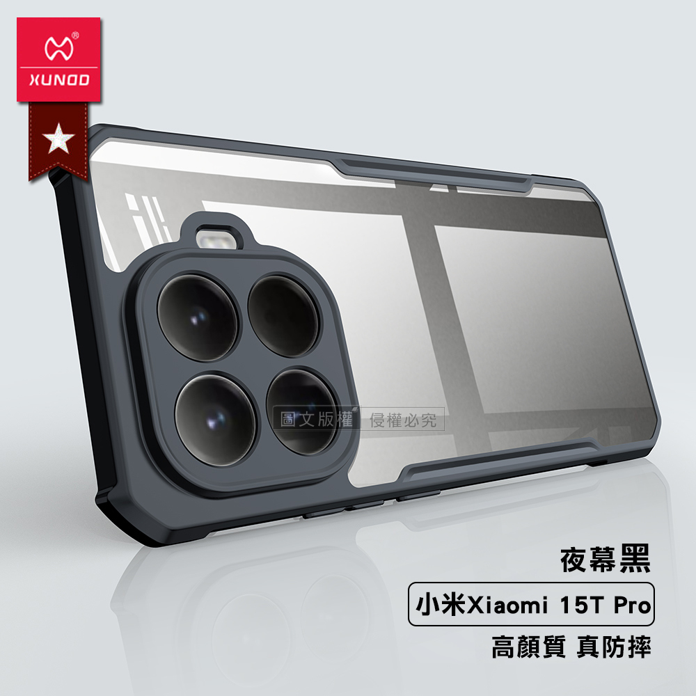 XUNDD訊迪 軍事防摔 小米 Xiaomi 15T Pro 鏡頭全包覆 清透保護殼 手機殼(夜幕黑)