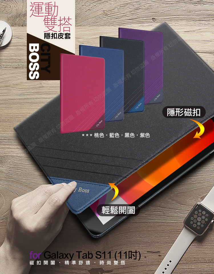 CITY BOSS Galaxy Tab S11 (11吋) 運動雙搭隱扣皮套-桃