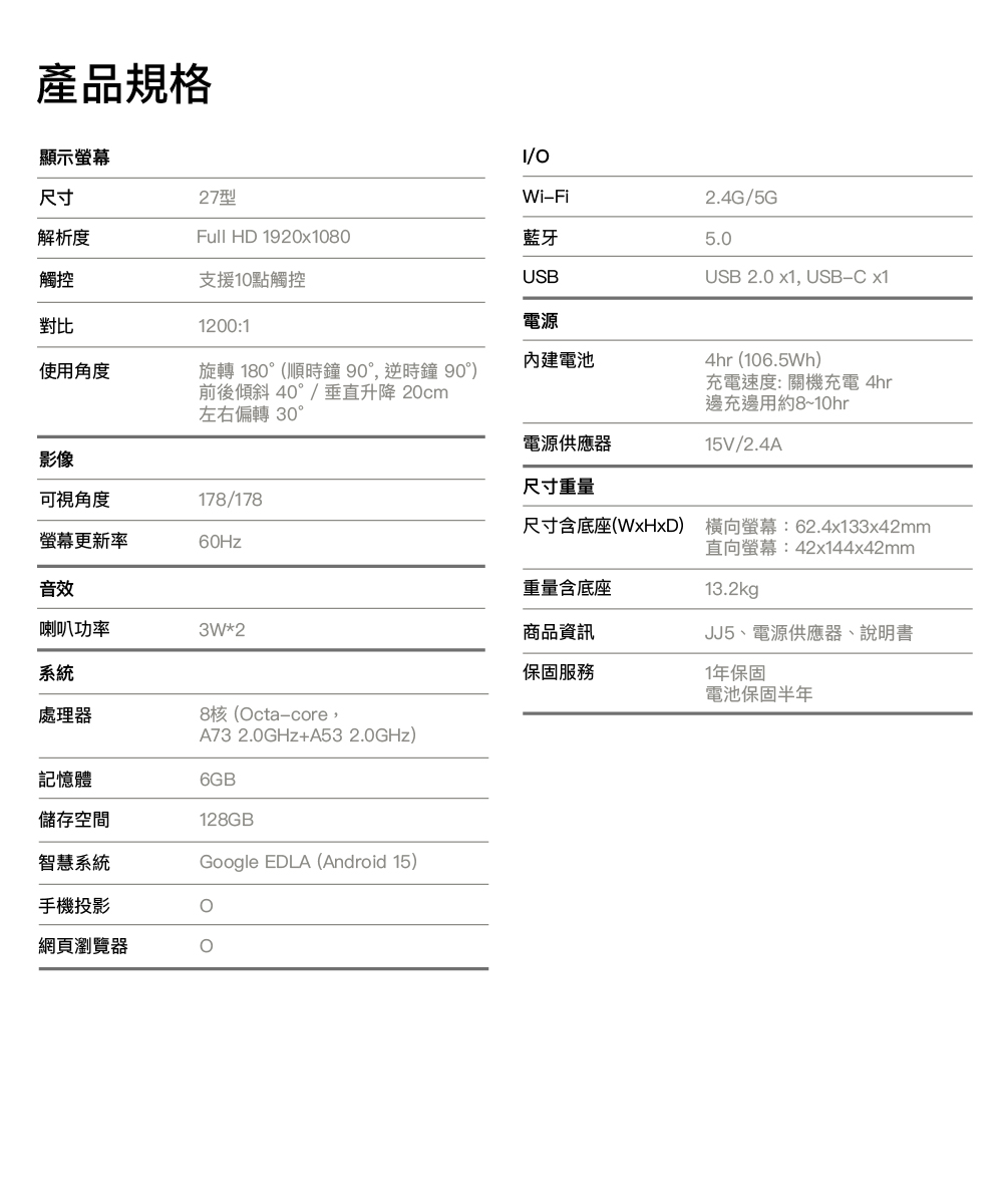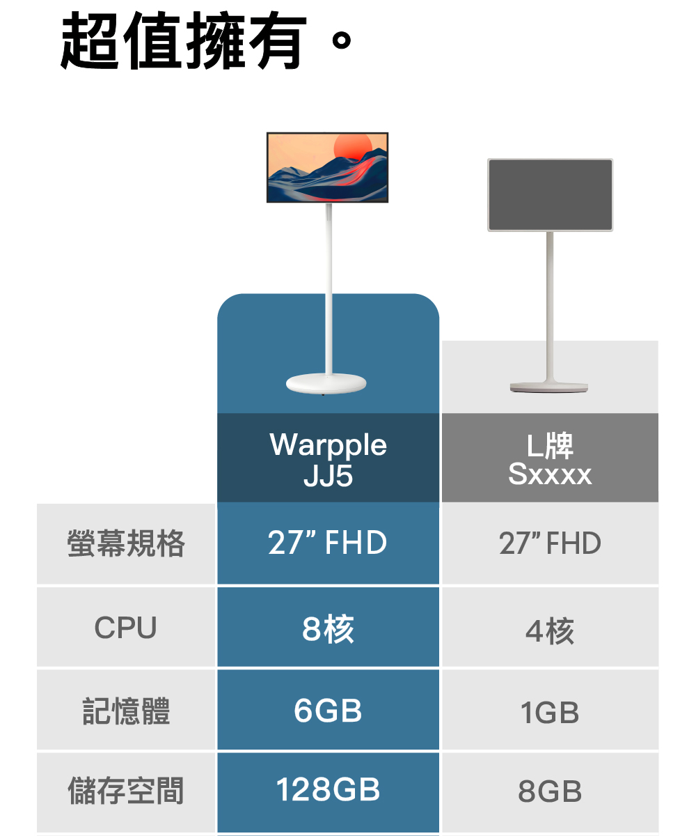 (無安裝)Warpple 27型閨蜜機 Pro FHD觸控行動顯示器 JJ5