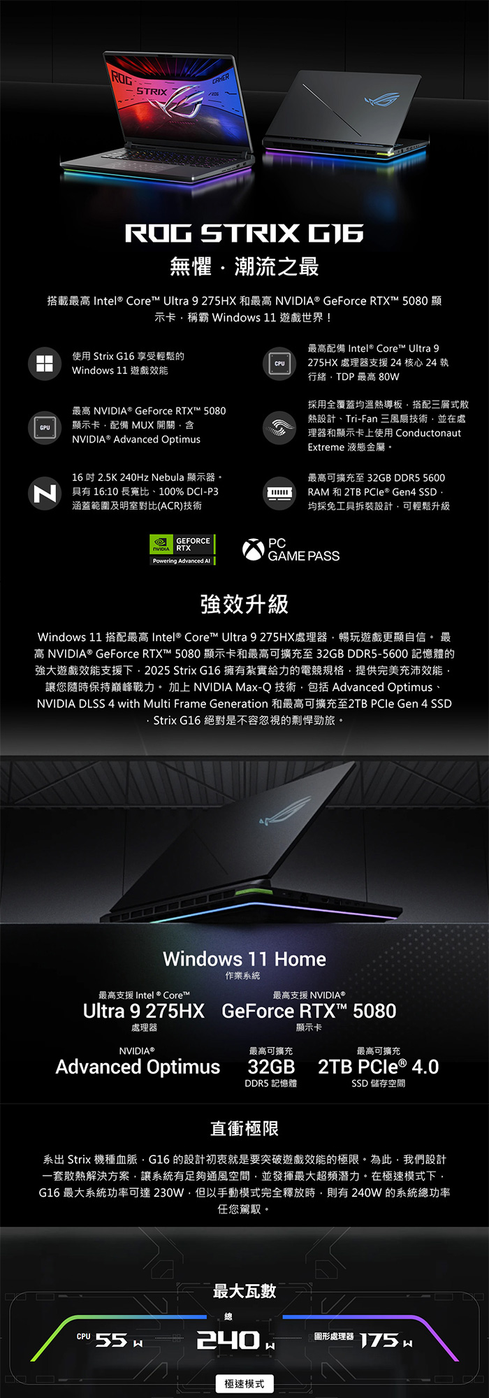 《ASUS 華碩》 G615LW-0051G275HX-NBL(16吋2.5K/U9 275HX/16G+32G/1TB SSD/RTX5080/特仕版)