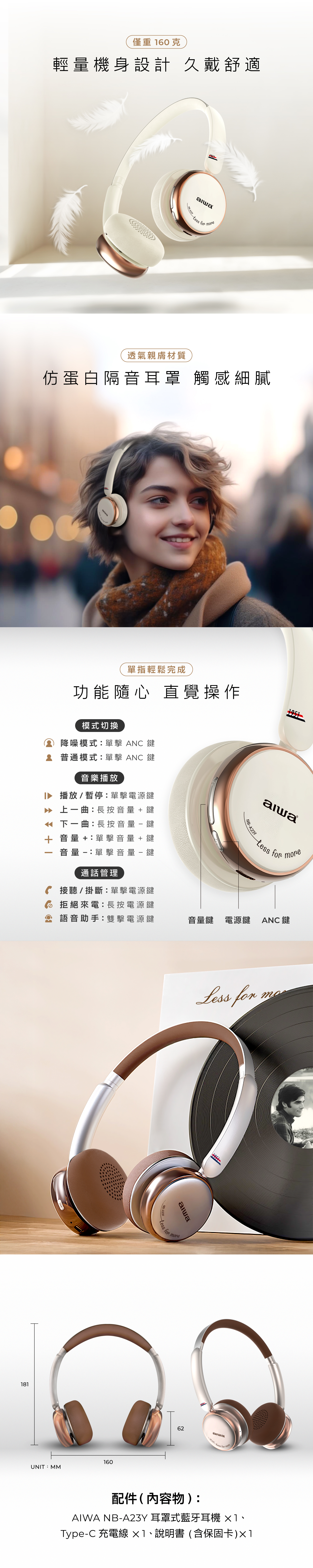 Aiwa 耳罩式藍牙耳機NB-A23Y象牙白