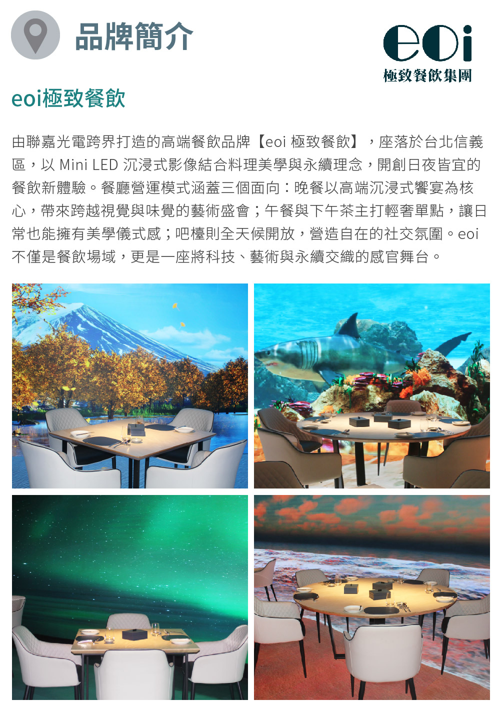 【eoi極致餐飲】午間單人套餐券獨家加贈精緻茶點乙份 (M0)