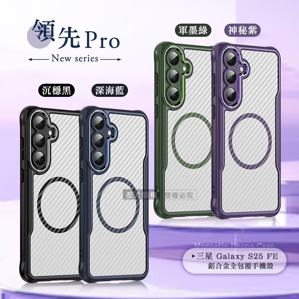 領先Pro 三星 Galaxy S25 FE 鋁合金鏡頭框 碳纖紋磁吸防摔殼 手機殼(沉穩黑)