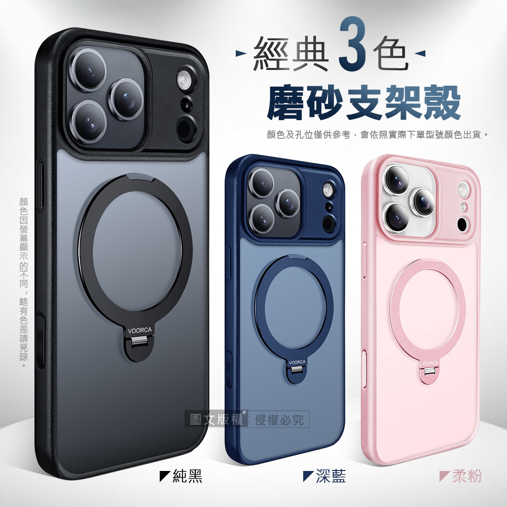 旋控 iPhone 17 Pro 360°磁吸支架磨砂膚感保護殼 氣囊防摔手機殼(純黑)