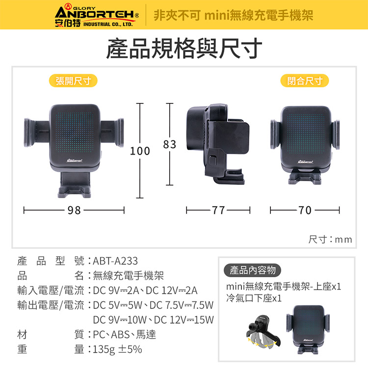 【安伯特】MINI無線充電手機架(搭配-冷氣口支架) 國家認證 一年保固 (電動夾緊 車用手機架 汽車手機架 手機支架)