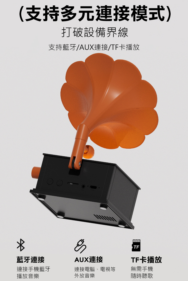 .支援藍牙、AUX、TF卡播放