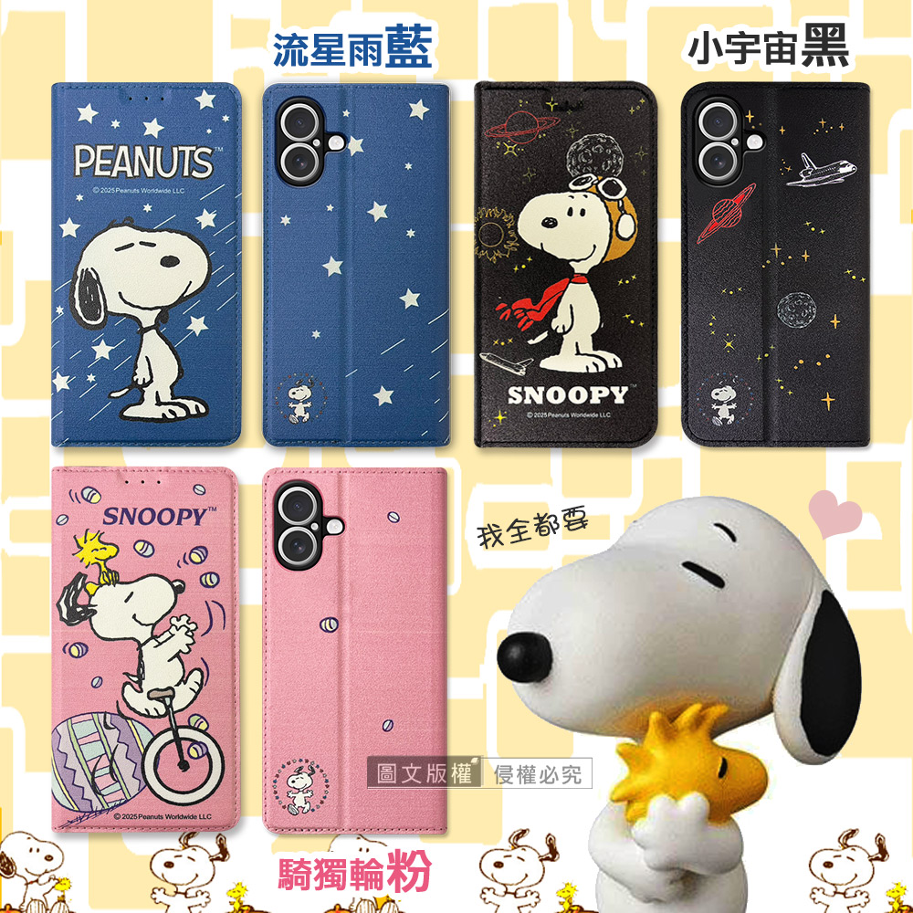 史努比授權正版 iPhone 17 金沙灘彩繪磁力手機皮套(小宇宙黑)